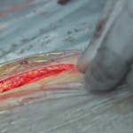 A wound within soft tissue that is characterized by clean, smooth edges that were created by a sharp object.