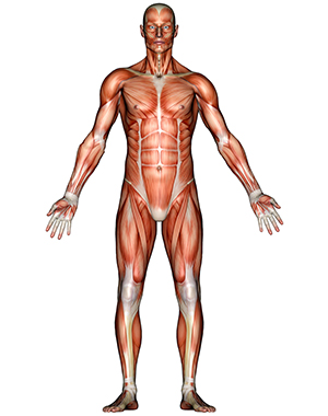 A standard reference position for the human body when standing erect, facing forward, feet forward and slightly apart, arms down at sides, and palms facing forward. Anatomic terms such as anterior, posterior, medial, and lateral apply to the axis of body when it is in the standard anatomical position.